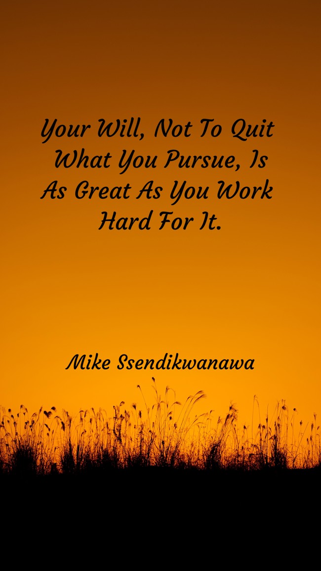 "Your Will, Not To Quit What You Pursue, Is As Great As You Work Hard For It."