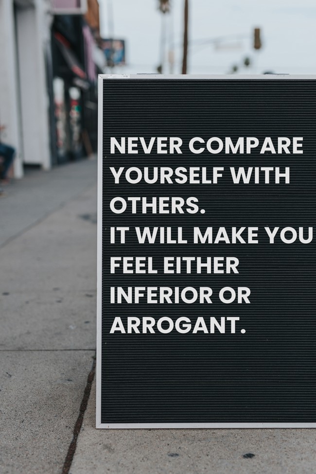 "Never compare yourself with others. It will make you feel either inferior or arrogant."