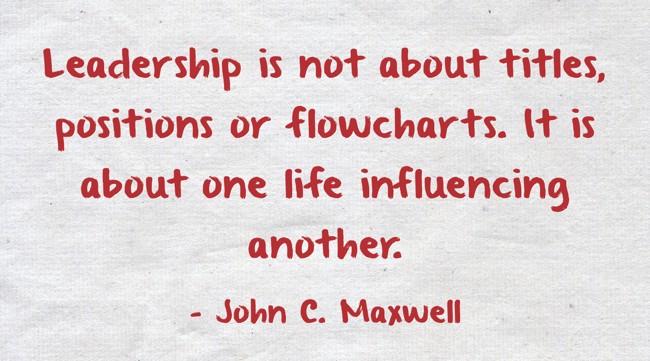 "Leadership is not about titles, positions or flowcharts. It is about one life influencing another."