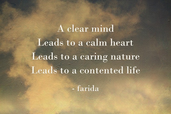"A clear mind Leads to a calm heart Leads to a caring nature Leads to a contented life "