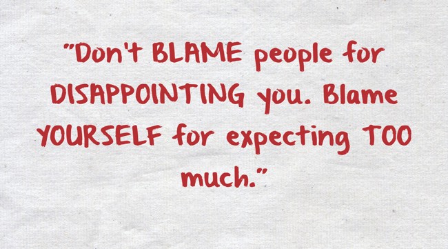 ""Don't BLAME people for DISAPPOINTING you. Blame YOURSELF for expecting TOO much.""