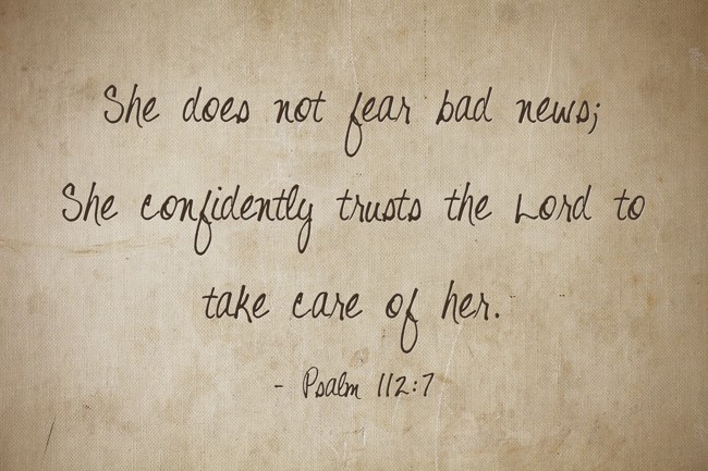"She does not fear bad news; She confidently trusts the Lord to take care of her."