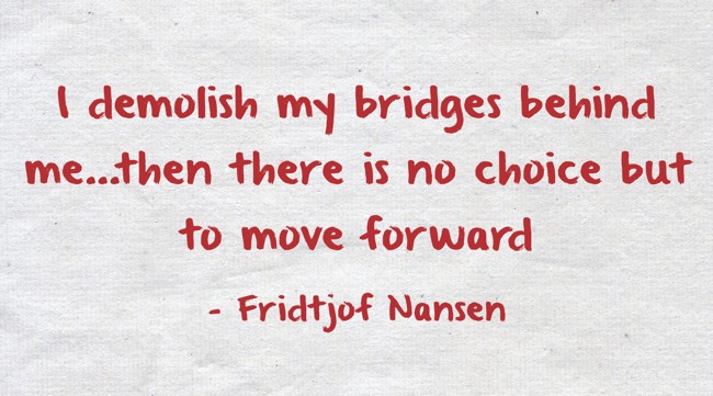 "I demolish my bridges behind me...then there is no choice but to move forward "