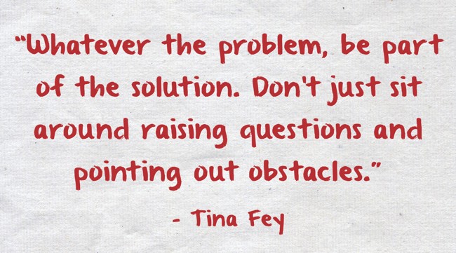 "“Whatever the problem, be part of the solution. Don't just sit around raising questions and pointing out obstacles.”"