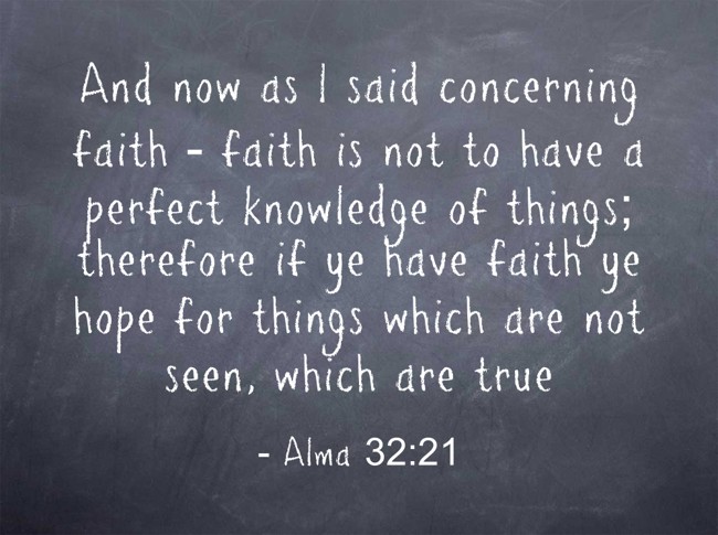 "And now as I said concerning faith - faith is not to have a perfect knowledge of things; therefore if ye have faith ye hope for things which are not seen, which are true"