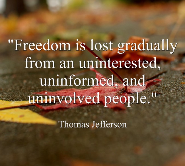 ""Freedom is lost gradually from an uninterested, uninformed, and uninvolved people.""