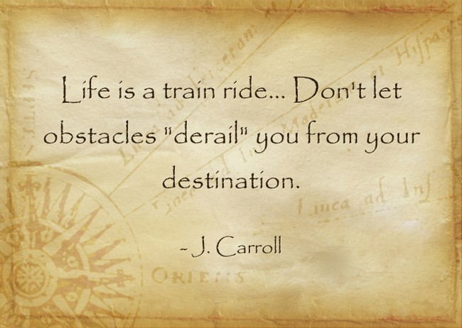 "Life is a train ride... Don't let obstacles "derail" you from your destination."