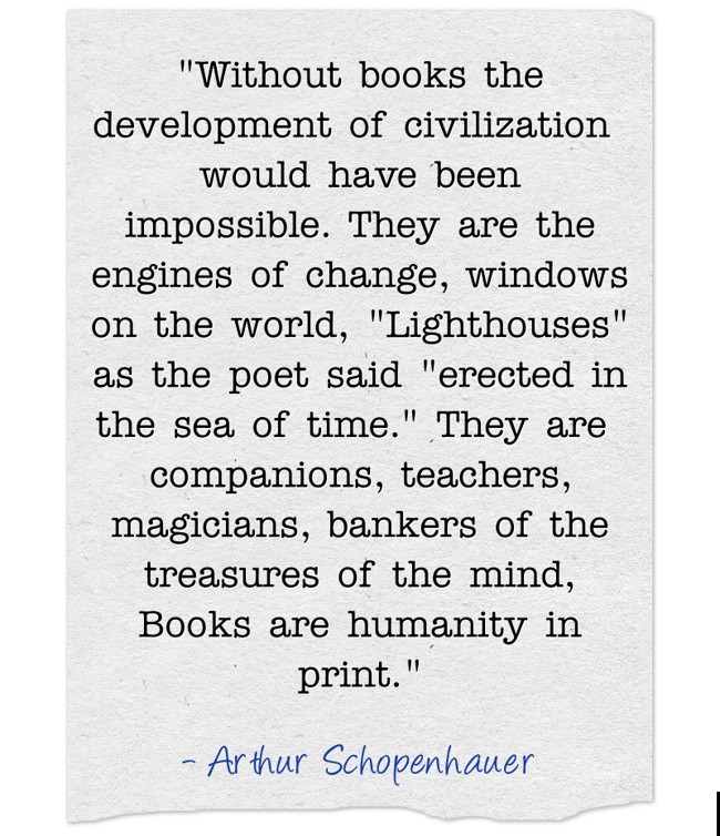 ""Without books the development of civilization would have been impossible. They are the engines of change, windows on the world, "Lighthouses" as the poet said "erected in the sea of time." They are companions, teachers, magicians, bankers of the treasures of the mind, Books are humanity in print.""