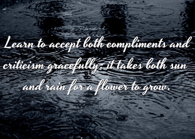 "Learn to accept both compliments and criticism gracefully; it takes both sun and rain for a flower to grow."