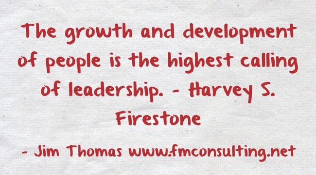"The growth and development of people is the highest calling of leadership. - Harvey S. Firestone "