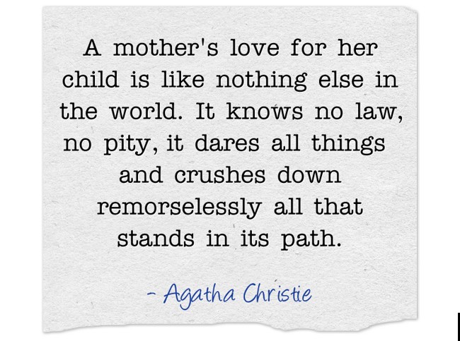 "A mother's love for her child is like nothing else in the world. It knows no law, no pity, it dares all things and crushes down remorselessly all that stands in its path."