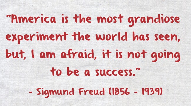 ""America is the most grandiose experiment the world has seen, but, I am afraid, it is not going to be a success.""