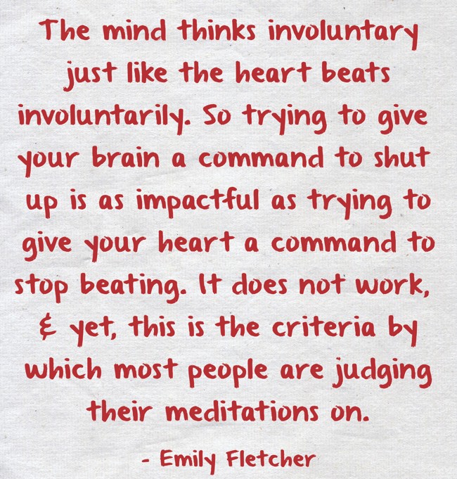 "The mind thinks involuntary just like the heart beats involuntarily. So trying to give your brain a command to shut up is as impactful as trying to give your heart a command to stop beating. It does not work, & yet, this is the criteria by which most people are judging their meditations on."
