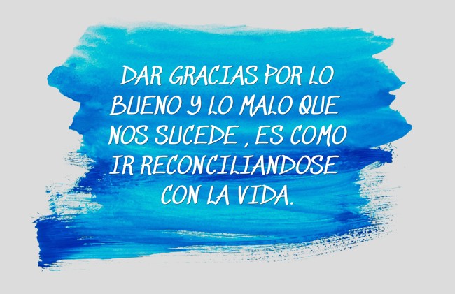 "DAR GRACIAS POR LO BUENO Y LO MALO QUE NOS SUCEDE , ES COMO IR RECONCILIANDOSE CON LA VIDA."