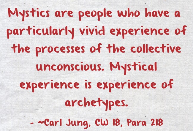 "Mystics are people who have a particularly vivid experience of the processes of the collective unconscious. Mystical experience is experience of archetypes."