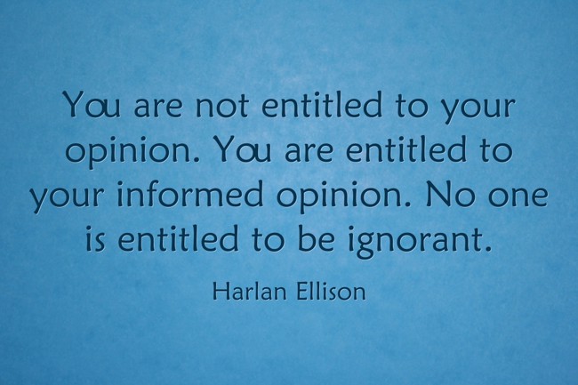 "You are not entitled to your opinion. You are entitled to your informed opinion. No one is entitled to be ignorant. "