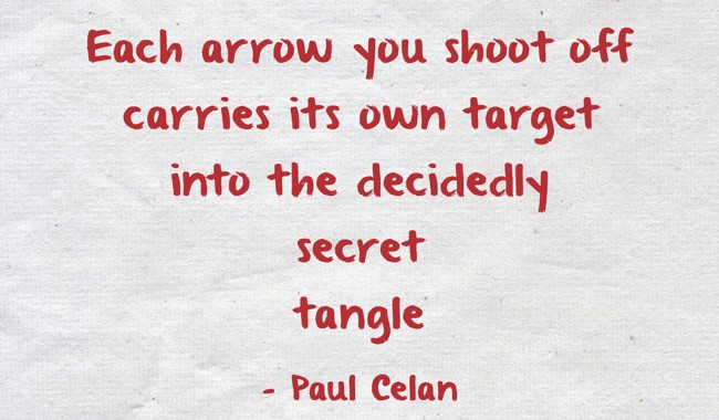 "Each arrow you shoot off carries its own target into the decidedly secret tangle"