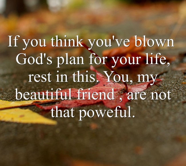 "If you think you've blown God's plan for your life, rest in this. You, my beautiful friend , are not that poweful."