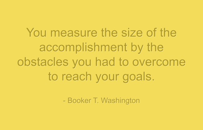 " You measure the size of the accomplishment by the obstacles you had to overcome to reach your goals. "