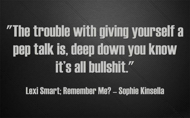 ""The trouble with giving yourself a pep talk is, deep down you know it’s all bullshit.""