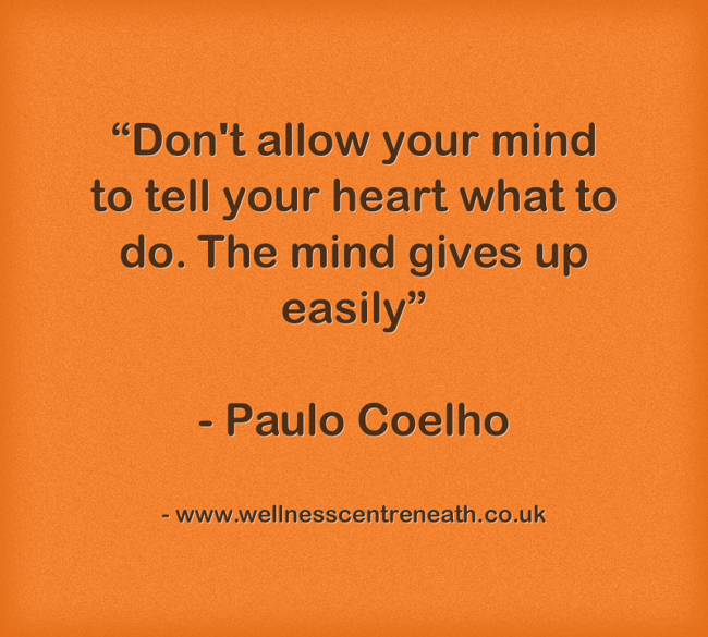 "“Don't allow your mind to tell your heart what to do. The mind gives up easily” - Paulo Coelho"