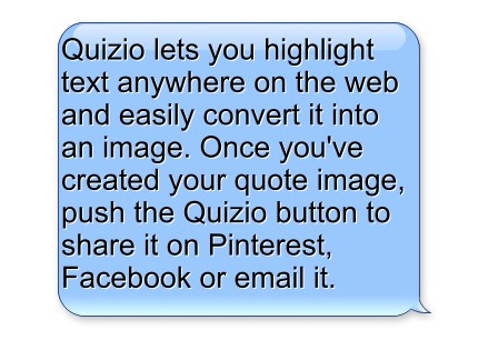 "Quizio lets you highlight text anywhere on the web and easily convert it into an image. Once you've created your quote image, push the Quizio button to share it on Pinterest, Facebook or email it."
