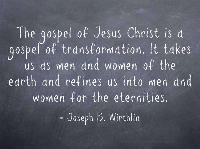 "The gospel of Jesus Christ is a gospel of transformation. It takes us as men and women of the earth and refines us into men and women for the eternities."