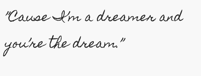 "”Cause I’m a dreamer and you’re the dream.”"