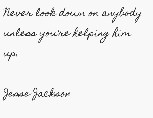 "Never look down on anybody unless you're helping him up. Jesse Jackson"