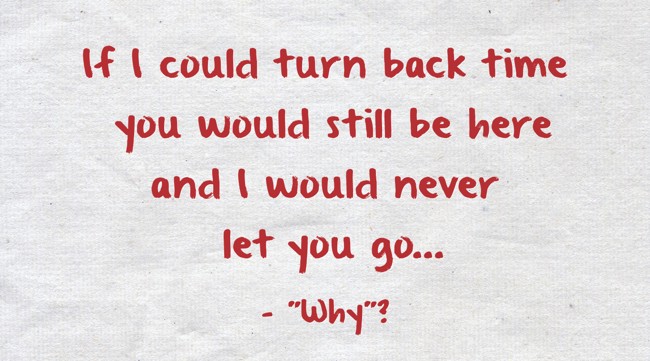 "If I could turn back time you would still be here and I would never let you go..."