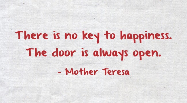 "There is no key to happiness. The door is always open."