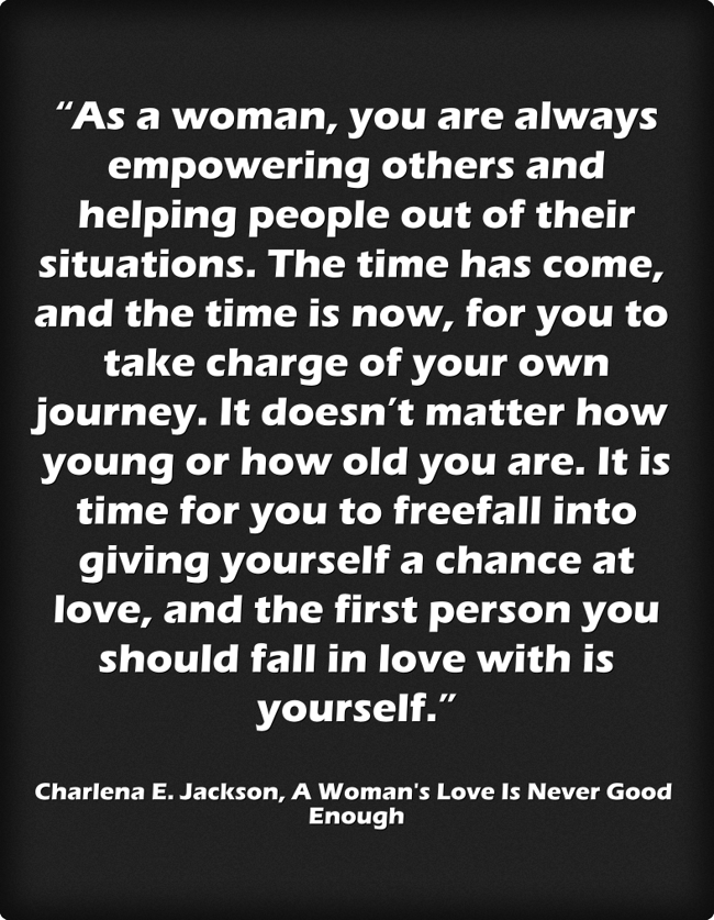 "“As a woman, you are always empowering others and helping people out of their situations. The time has come, and the time is now, for you to take charge of your own journey. It doesn’t matter how young or how old you are. It is time for you to freefall into giving yourself a chance at love, and the first person you should fall in love with is yourself.”"
