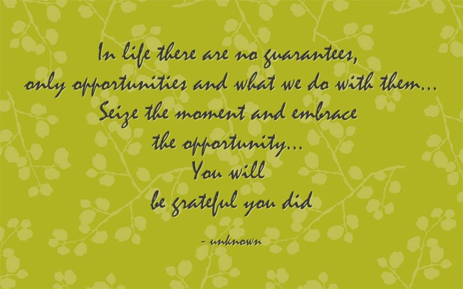 "In life there are no guarantees, only opportunities and what we do with them... Seize the moment and embrace the opportunity... You will be grateful you did"