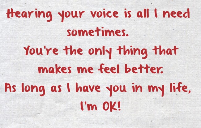 "Hearing your voice is all I need sometimes. You’re the only thing that makes me feel better. As long as I have you in my life, I’m OK!"