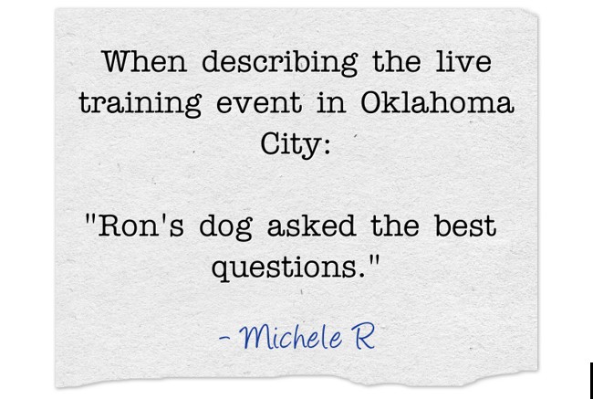 "When describing the live training event in Oklahoma City: "Ron's dog asked the best questions.""