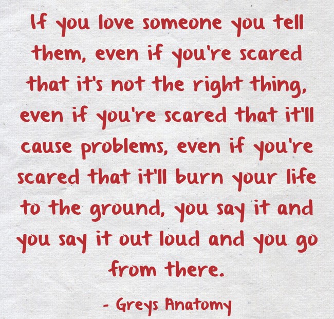 "If you love someone you tell them, even if you’re scared that it’s not the right thing, even if you’re scared that it’ll cause problems, even if you’re scared that it’ll burn your life to the ground, you say it and you say it out loud and you go from there."