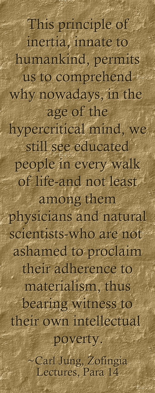 "This principle of inertia, innate to humankind, permits us to comprehend why nowadays, in the age of the hypercritical mind, we still see educated people in every walk of life-and not least among them physicians and natural scientists-who are not ashamed to proclaim their adherence to materialism, thus bearing witness to their own intellectual poverty."