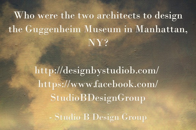 "Who were the two architects to design the Guggenheim Museum in Manhattan, NY? http://designbystudiob.com/ https://www.facebook.com/StudioBDesignGroup "