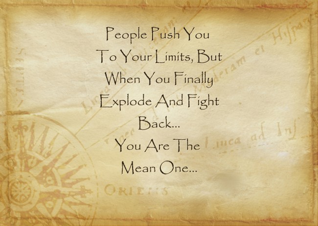 "People Push You To Your Limits, But When You Finally Explode And Fight Back... You Are The Mean One..."