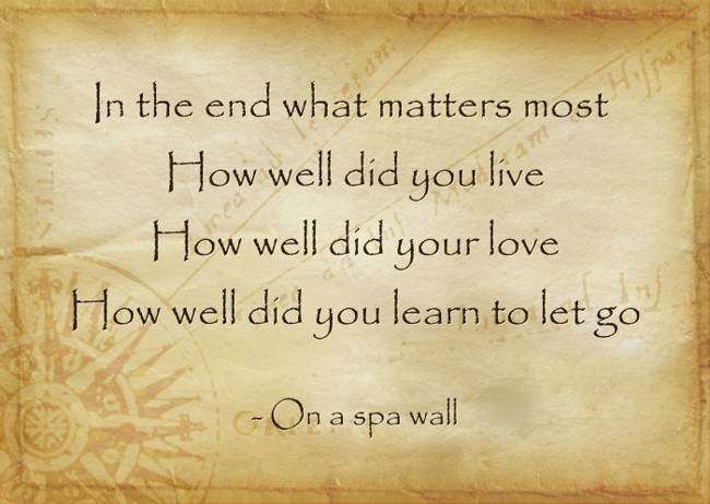 "In the end what matters most How well did you live How well did your love How well did you learn to let go"