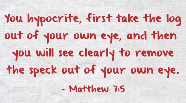"You hypocrite, first take the log out of your own eye, and then you will see clearly to remove the speck out of your own eye."