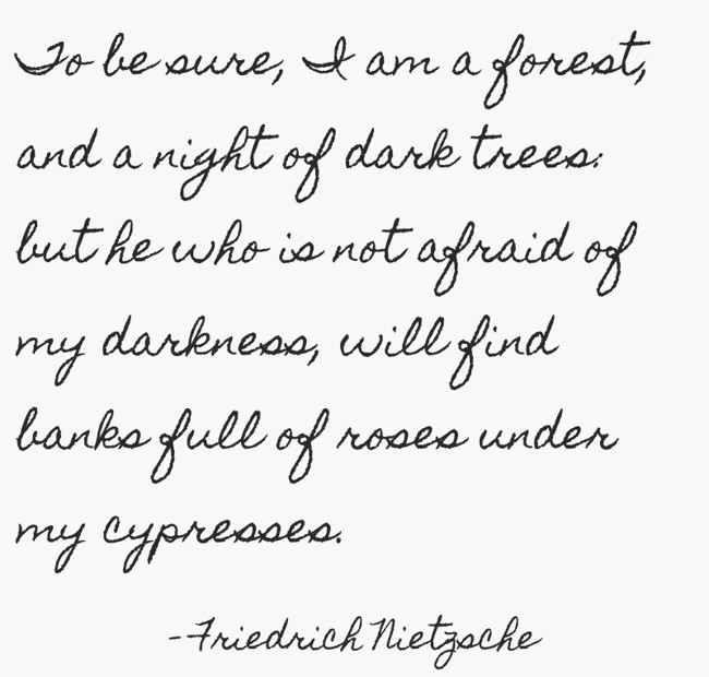 "To be sure, I am a forest, and a night of dark trees: but he who is not afraid of my darkness, will find banks full of roses under my cypresses."