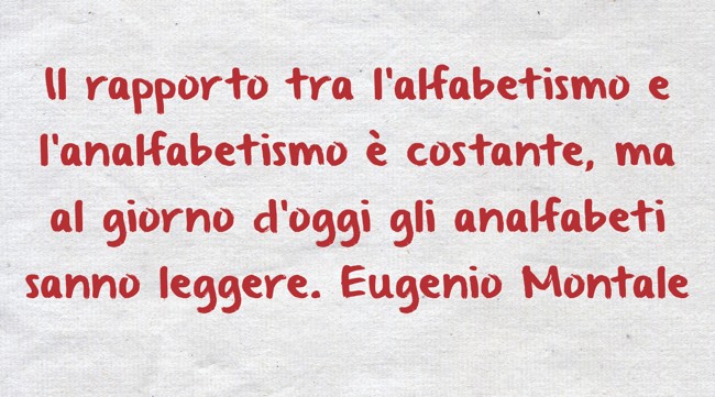 "Il rapporto tra l'alfabetismo e l'analfabetismo è costante, ma al giorno d'oggi gli analfabeti sanno leggere. Eugenio Montale"