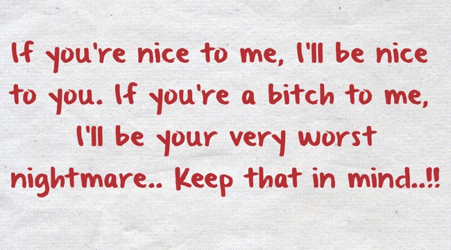 "If you're nice to me, I'll be nice to you. If you're a bitch to me, I'll be your very worst nightmare.. Keep that in mind..!!"