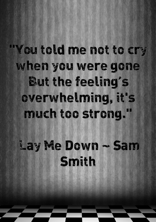 ""You told me not to cry when you were gone But the feeling’s overwhelming, it's much too strong." Lay Me Down ~ Sam Smith "