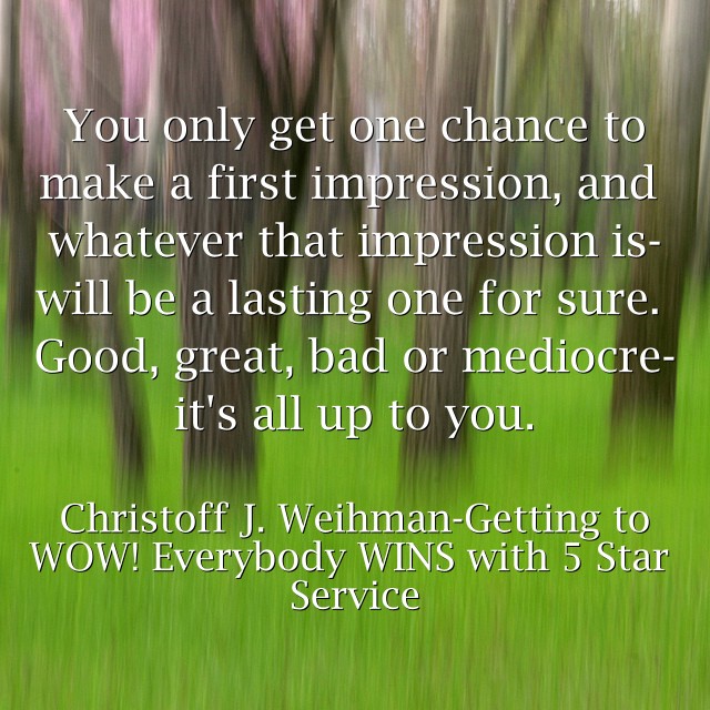 "You only get one chance to make a first impression, and whatever that impression is-will be a lasting one for sure. Good, great, bad or mediocre-it's all up to you."