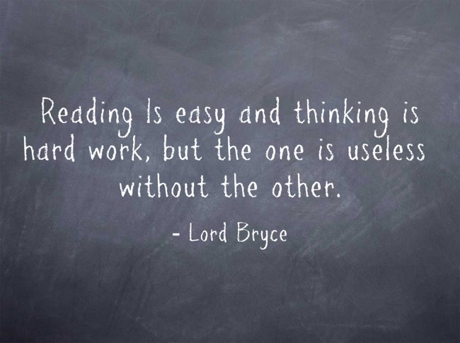 "Reading Is easy and thinking is hard work, but the one is useless without the other."