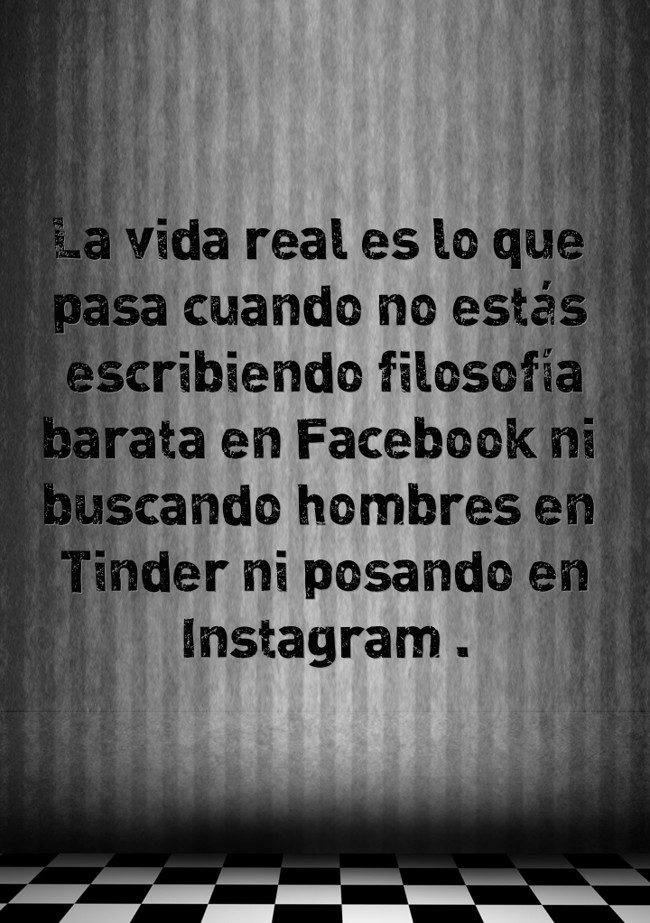 "La vida real es lo que pasa cuando no estás escribiendo filosofía barata en Facebook ni buscando hombres en Tinder ni posando en Instagram ."