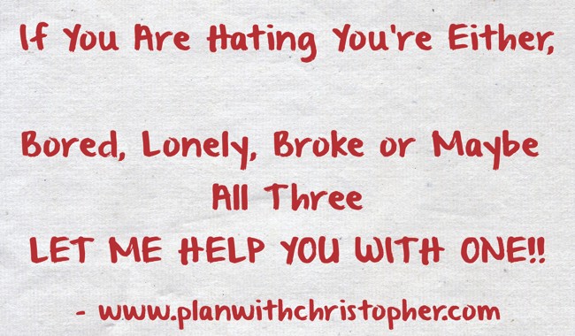 "If You Are Hating You're Either, Bored, Lonely, Broke or Maybe All Three LET ME HELP YOU WITH ONE!! "
