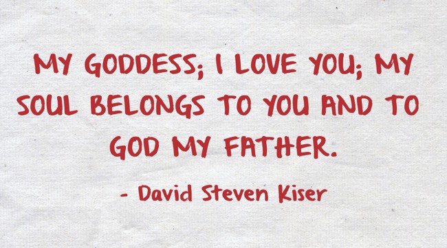 "MY GODDESS; I LOVE YOU; MY SOUL BELONGS TO YOU AND TO GOD MY FATHER."